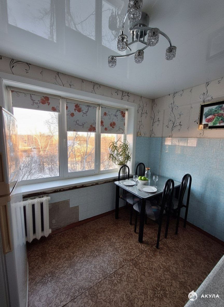 Состояние: Полностью готова к проживанию. Вся мебель и техника (кухонный гарнитур, холодильник, обеденный стол и 4 стула, новая плита, диван, кресла, в прихожей вместительный шкаф, прихожая, зеркало, настенные часы, шкафы, люстры, потолок натяжной) остаются новым хозяевам.