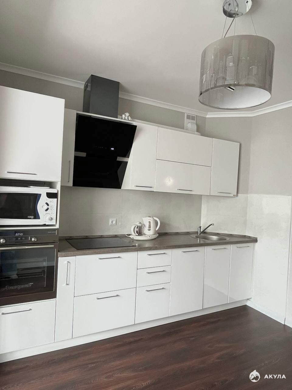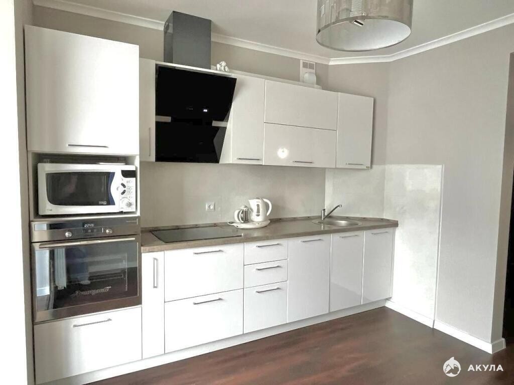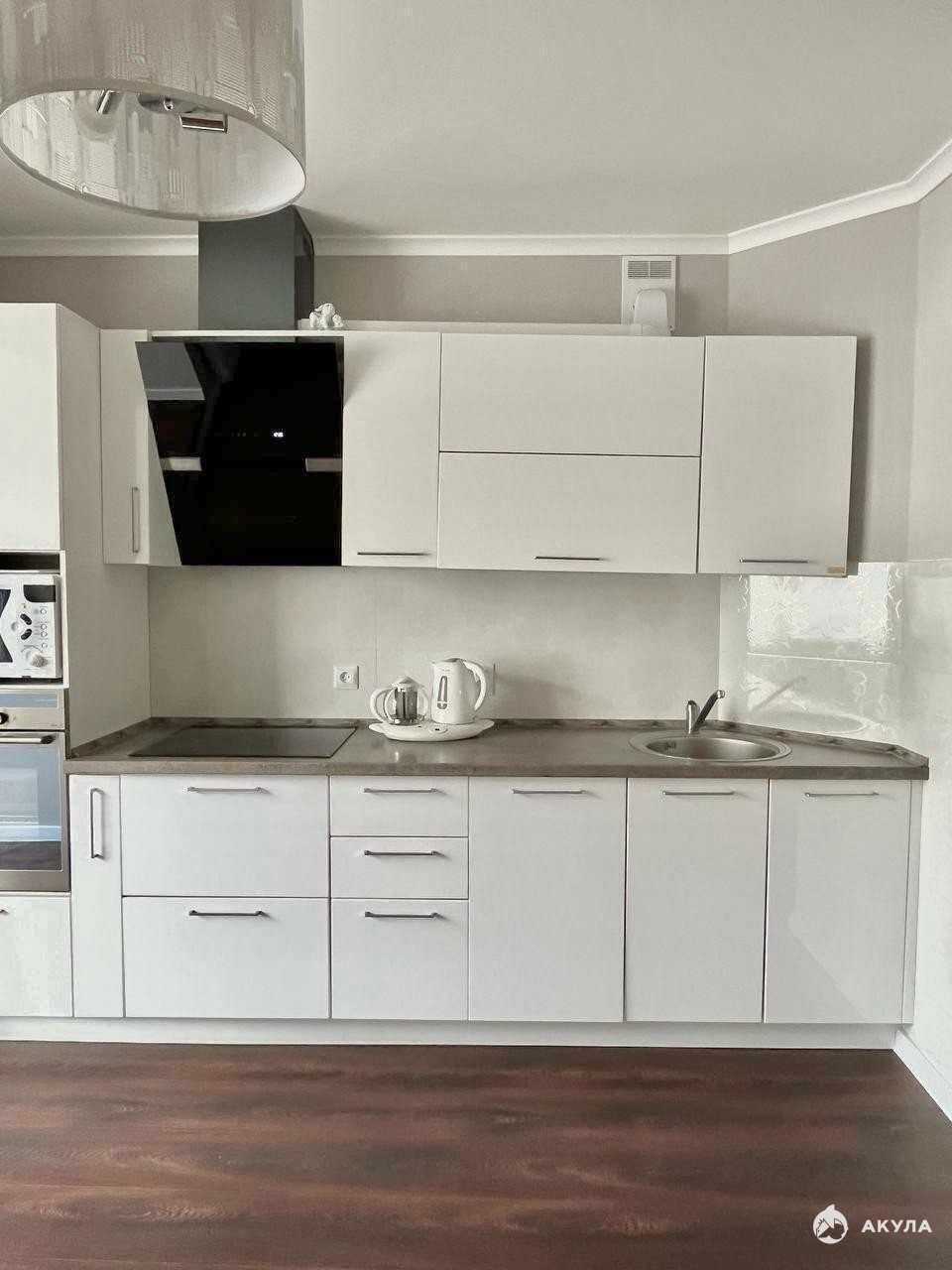 Кухня: Установлен новый, качественный кухонный гарнитур с мойкой и встроенной техникой ( посудомоечная машина, вытяжка, духовой шкаф), уютная обеденная зона стол со стульями в стиле лофт.