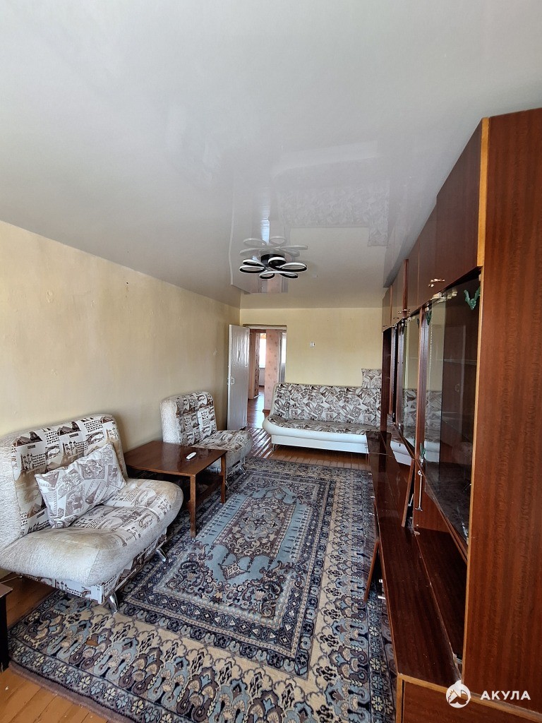 В квартире остается кухонный гарнитур, обеденная зона (обеденный стол и стулья), плита, мягкая мебель (большой диван и два кресла)