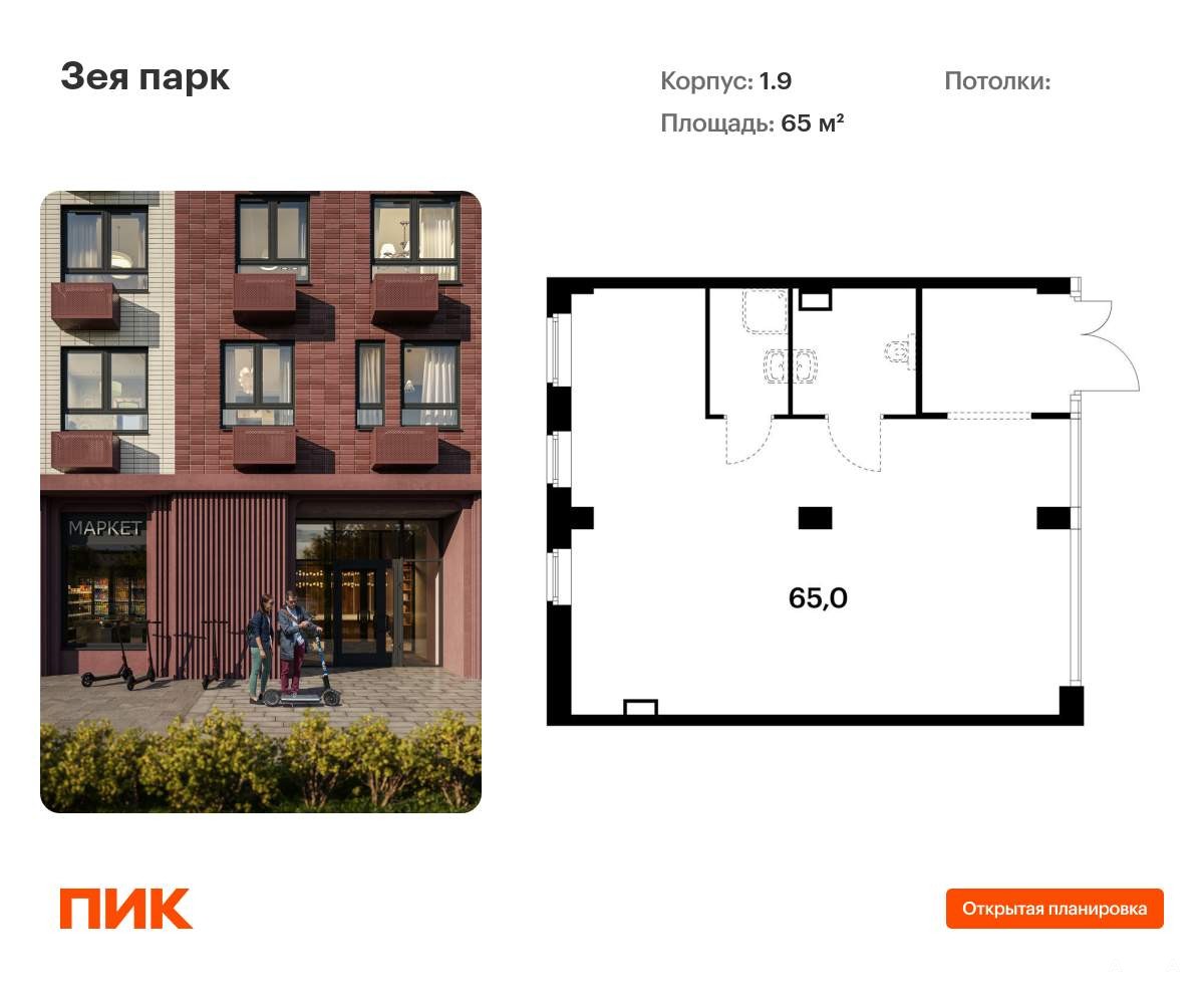 Продаётся нежилое помещение свободного назначения в новом жилом районе Зея парк от ПИК. Открытая планировка, витринное остекление, удобный вход на уровне земли. Помещение (номер на площадке: №5) расположено по адресу: Амурская область, город Благовещенск, квартал 800, корпус 1.9. Ввод в эксплуатацию 4 квартал 2026. Продажа напрямую от застройщика. Преимущества помещения: