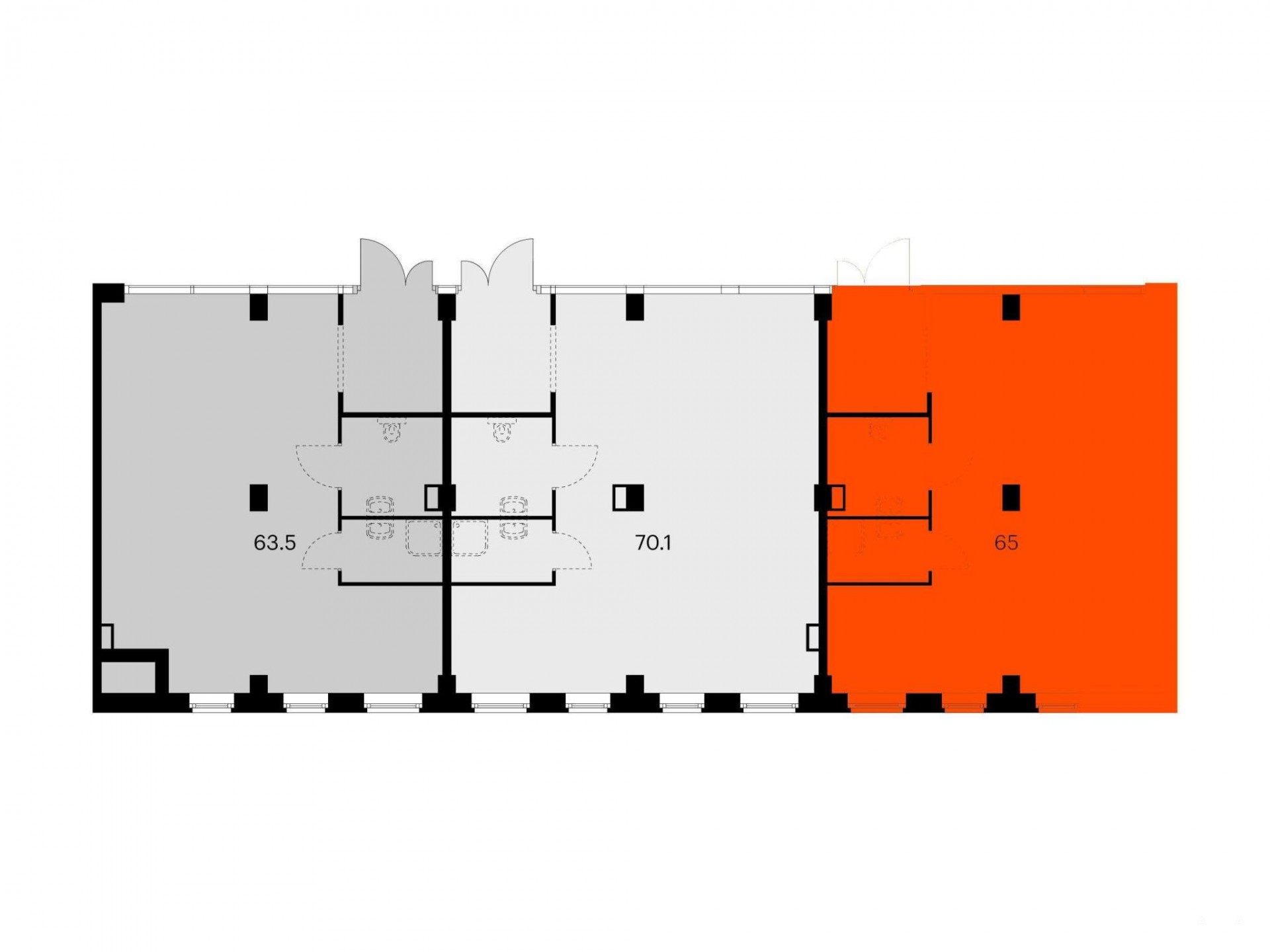 - Открытая планировка и возможность объединения помещений