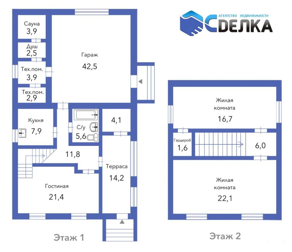 • Площадь: 167.1 м² ( из них гараж 42.5 м2 на две машины)