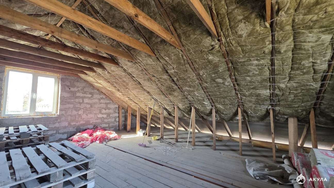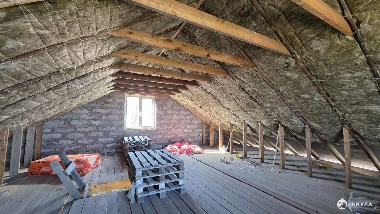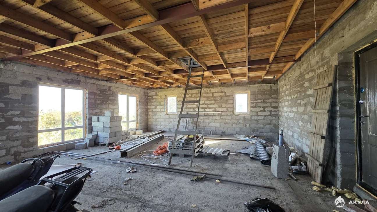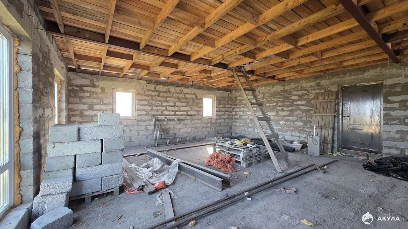 Дом черновой постройки представляет собой строение из трёх этажей: первый этаж - гараж 73 м2 на две машины (шириной 4 метра и высотой 3 метра), второй этаж свободной планировки 60 метров, и третий этаж мансардный 42 метра).