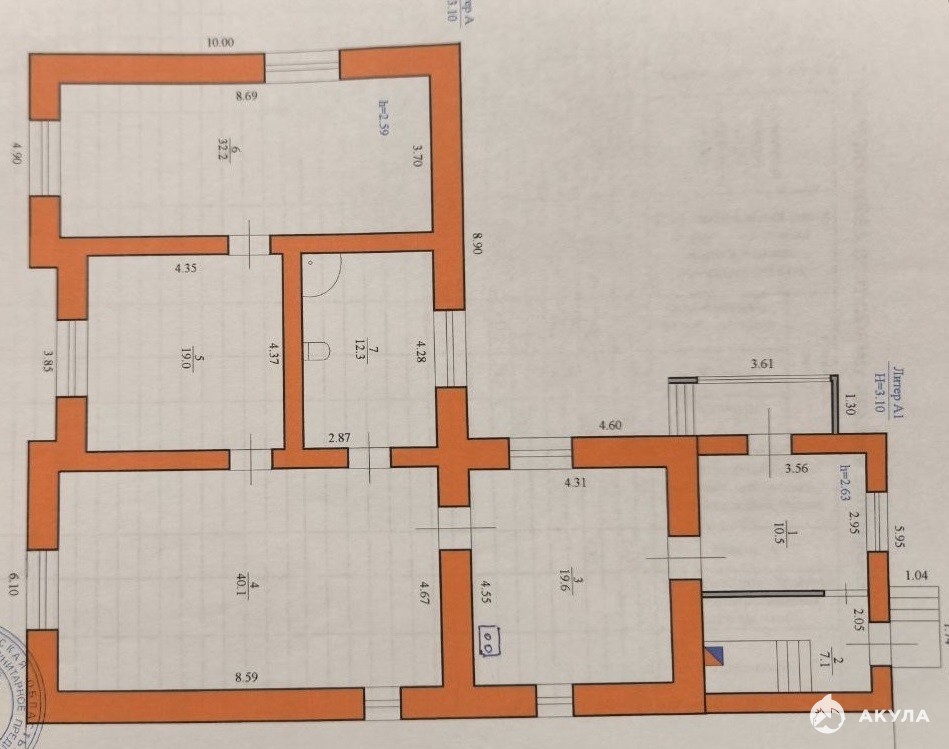 Жилые комнаты: 40, 1 м², 19 м², 32, 2 м²