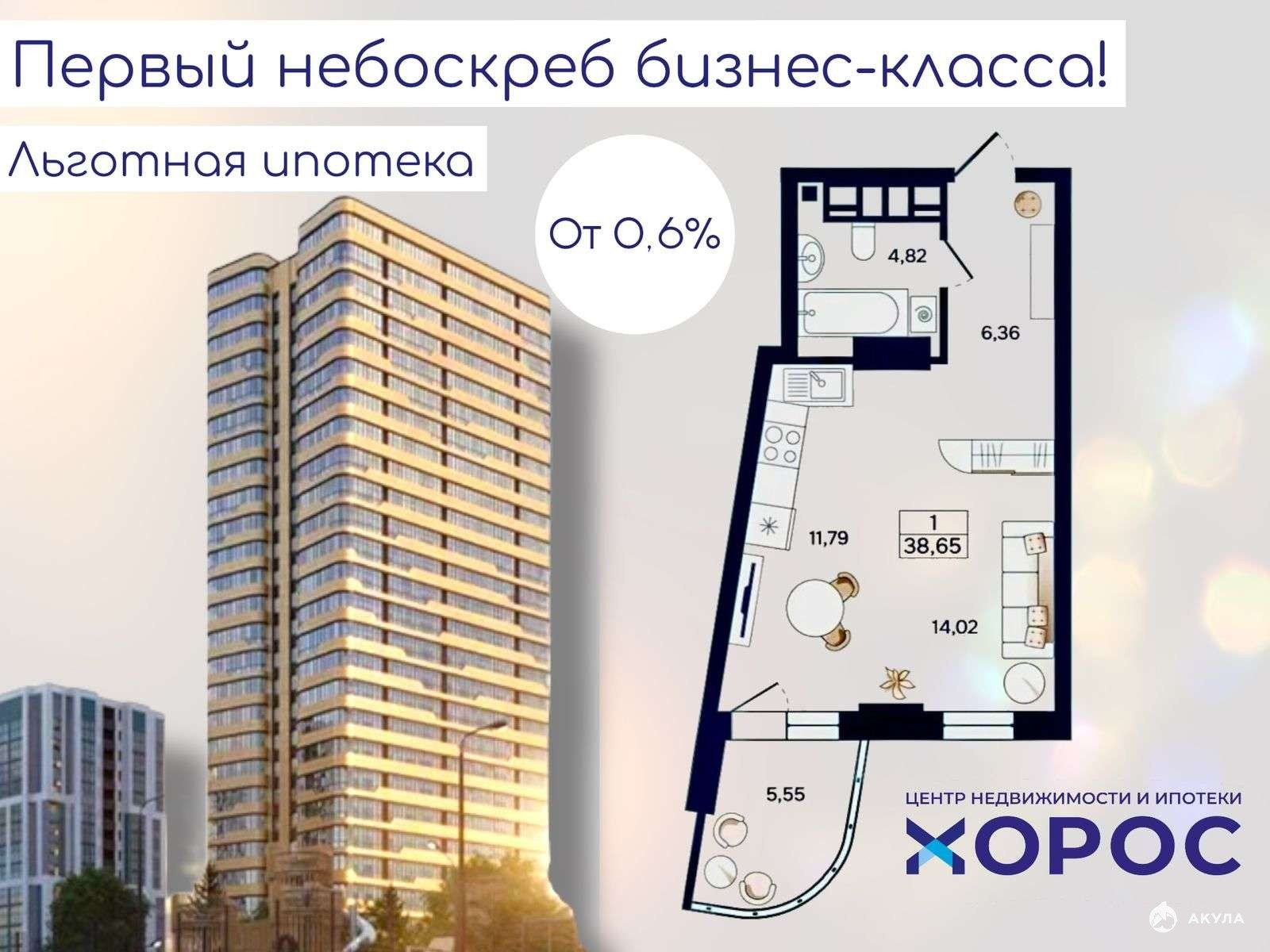 Небоскреб бизнес-класса в Благовещенске с уникальными особенностями и наполнением. Дальневосточная ипотека от 0, 6%, семейная от 4, 6%! Однокомнатная квартира площадью 38, 65 кв.м., южная сторона!