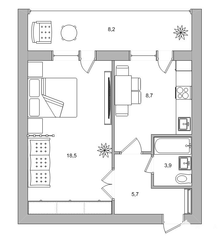 Уединение: Вы можете отдыхать в спальне, пока кто-то готовит на кухне. Никакого шума и посторонних запахов.