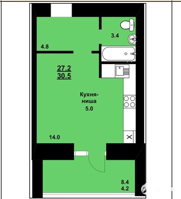 Общая площадь 30, 4 кв.м. — это действительно просторно для своей категории.