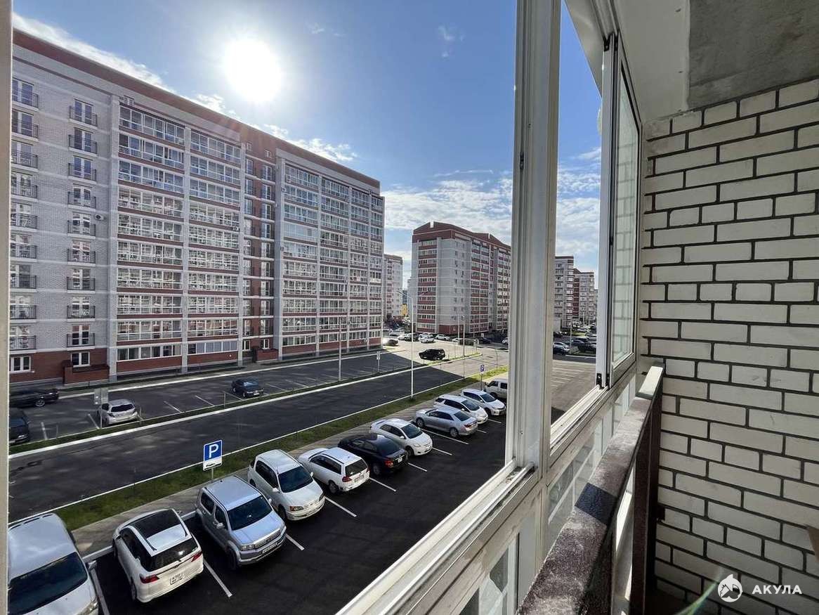 С кухни выход на лоджию. Хорошо просматривается просторная зона парковки