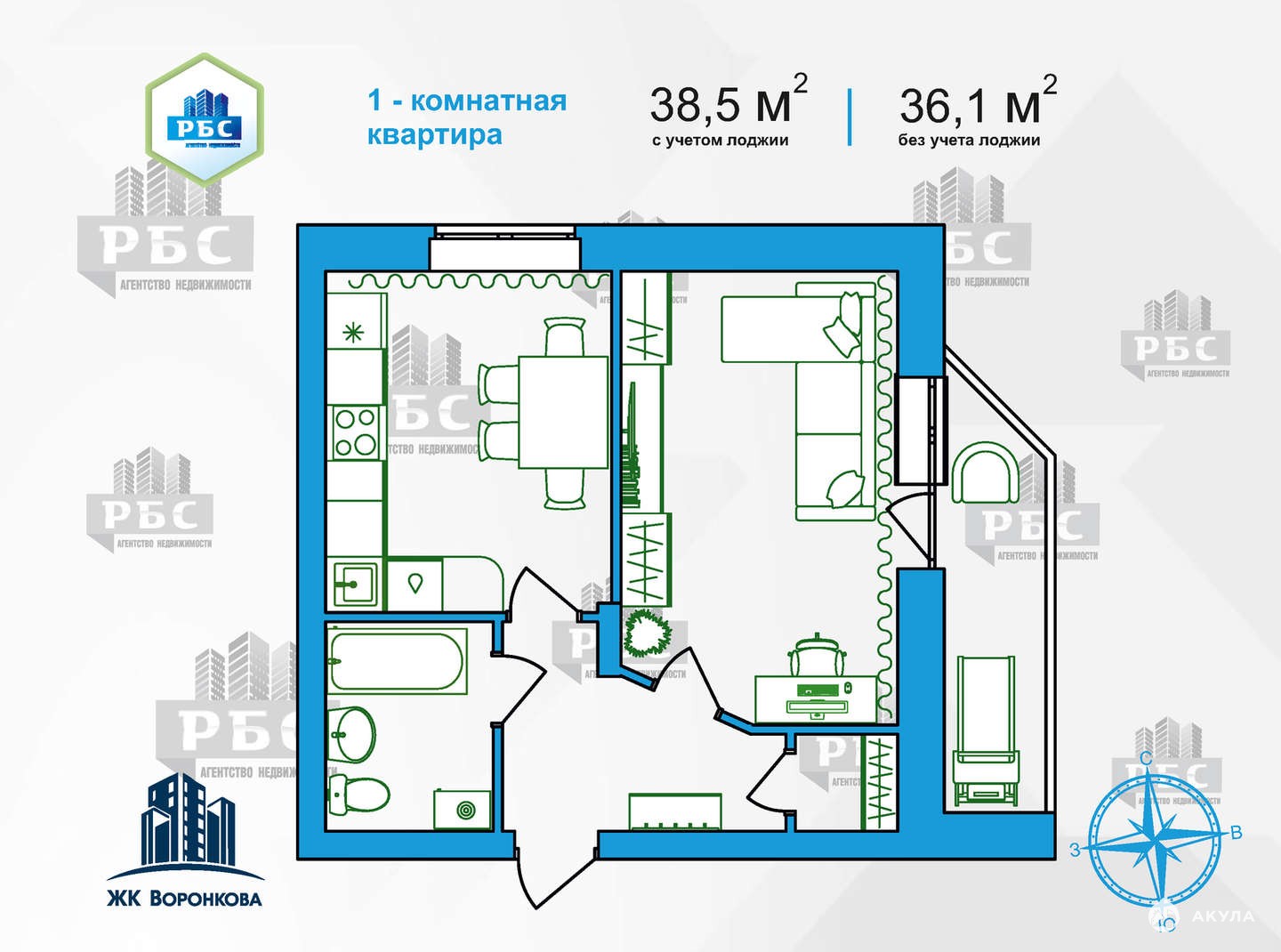 Предлагаем к продаже 1-комнатнатную квартиру в 16-этажном монолитно-кирпичном доме комфорт-класса ЖК «Воронкова» по ул.Воронкова, д.9 - ул.Студенческая. Дом сдан.