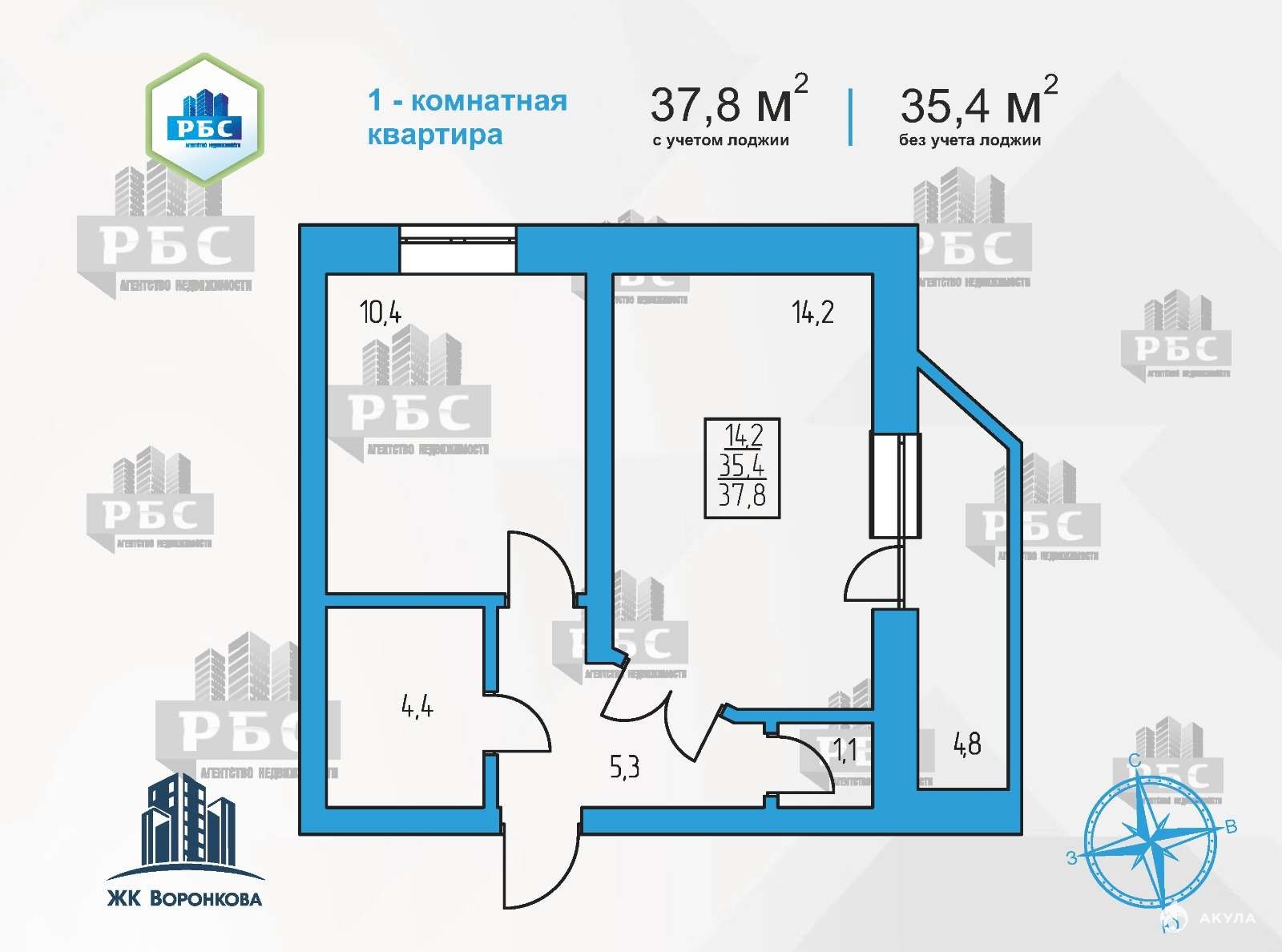 - 1-комнатная квартира, общая площадь 38, 3 кв.м. с учетом холодных помещений (35, 5 кв.м. без учета холодных помещений), стороны света: восток-север. Видовая квартира с панорамным остеклением лоджии.