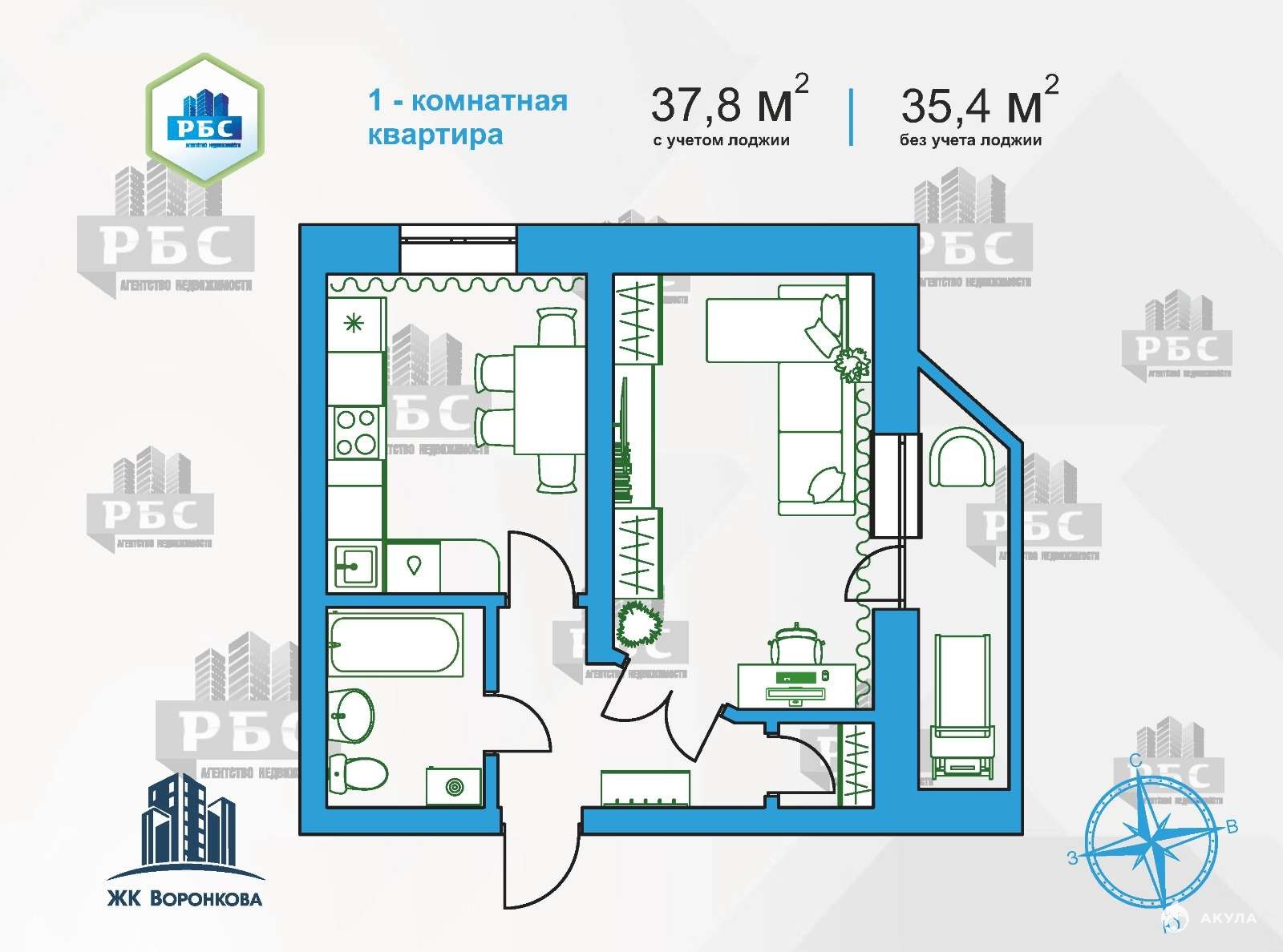 Предлагаем к продаже 1-комнатную квартиру в 16-этажном монолитно-кирпичном доме комфорт-класса ЖК «Воронкова» по ул.Воронкова, д.9 - ул.Студенческая. Дом сдан.