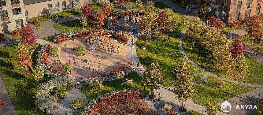 Внутри «Зея парка» много места для тихих прогулок и активного отдыха. В каждом дворе будет парк с детскими и спортивными площадками. Рядом с домами пройдёт широкий пешеходный бульвар, где мы установим удобные скамейки и высадим кустарники и цветы и взрослые деревья.