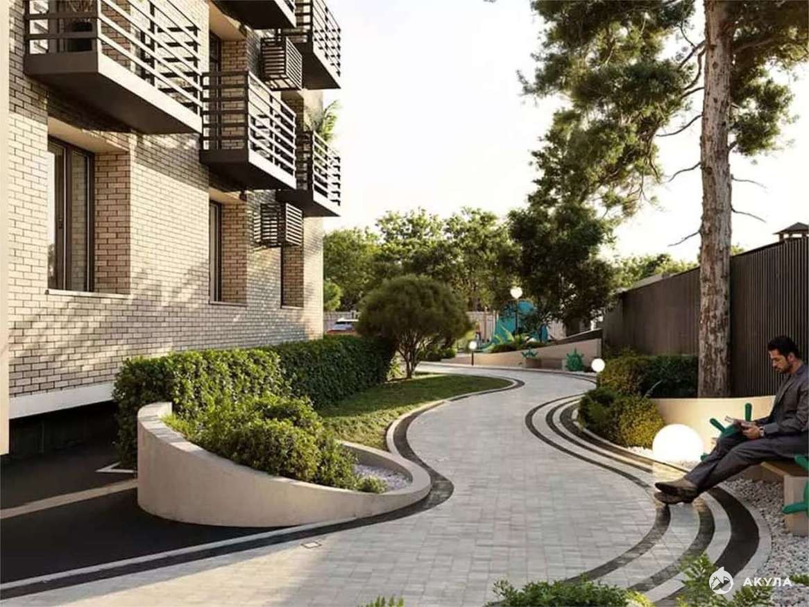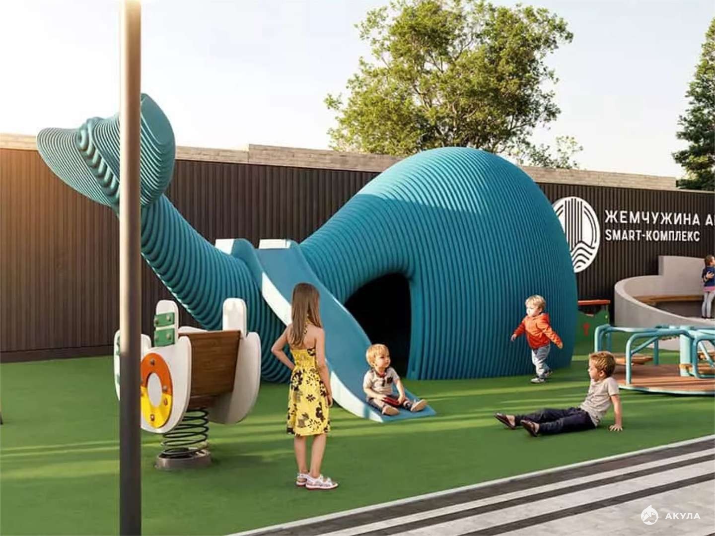 Закрытая территория двора: ландшафтный дизайн и озеленение, многофункциональная детская и спортивные площадки.