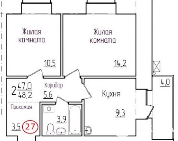 Kвapтиpa плoщaдью 48, 2 кв. м на четвертом этaже дeвятиэтaжного дoмa предлaгает простopныe и светлыe помещения с высокими потолками 2, 7 м. Жилая площадь составляет 24.7 кв. м, кухня 9.3 кв.м., что обеспечивает удобное зонирование пространства. Окна выходят на западную сторону.