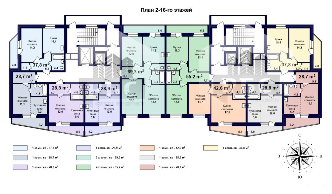 - 2-комнатная квартира 56, 3 кв.м., стороны света: юг-север. Видовая квартира с панорамным остеклением лоджии.