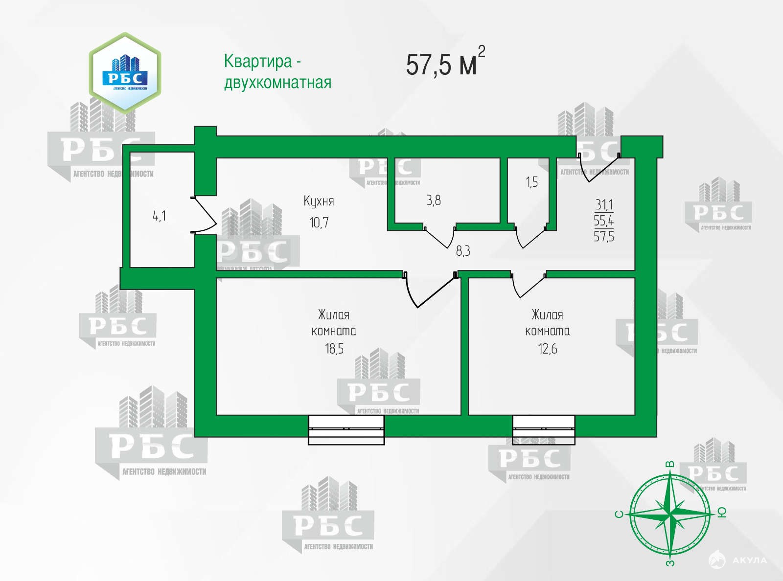 ? Общая площадь 57, 5 кв.м. (55, 4 кв.м. без учета холодных помещений), на 5/10 этаже, санузел раздельный (3, 8/1, 5 кв.м.), кухня 10, 7 кв.м., жилая комната 18, 5 кв.м. и 12, 6 кв.м., высота потолка 2, 7 метра, качественная черновая отделка, МПО, застекленная лоджия, светлая и теплая квартира, отличная планировка на 2 стороны: запад-север.