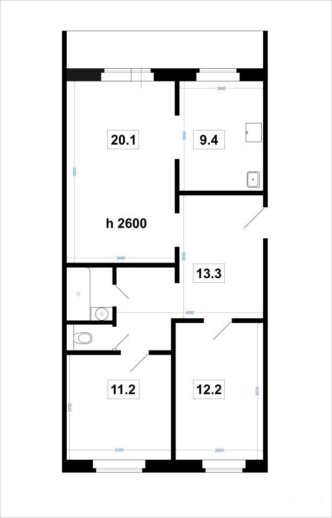 - Удобная планировка: кухня объединена с гостиной (отлично для семьи), а спальни - изолированные и квадратные.