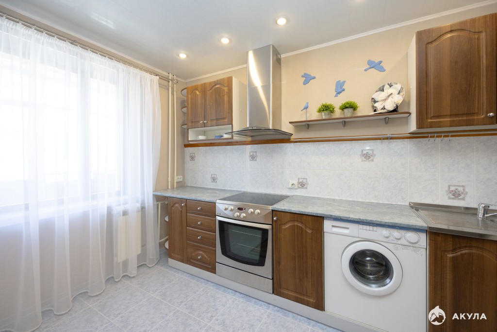 Приятный сюрприз: новым хозяевам остается вся необходимая техника (холодильник, электроплита с вытяжкой, стиральная машина, кондиционер, водонагреватель) и мебель.