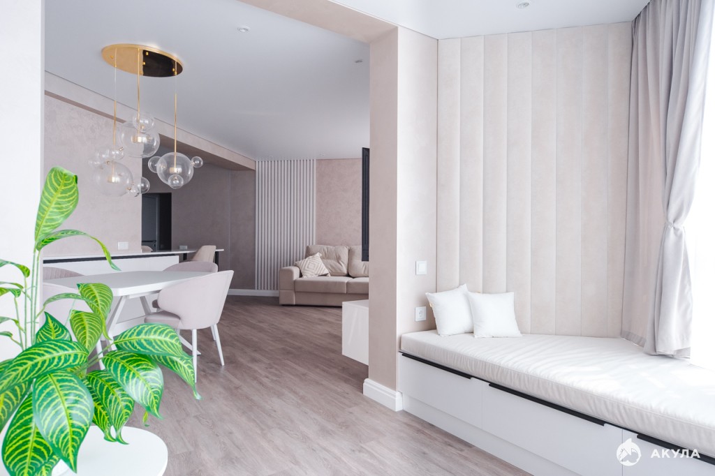 Дорогой ремонт в светлых тонах по дизайн проекту. Система теплый пол по всей квартире.