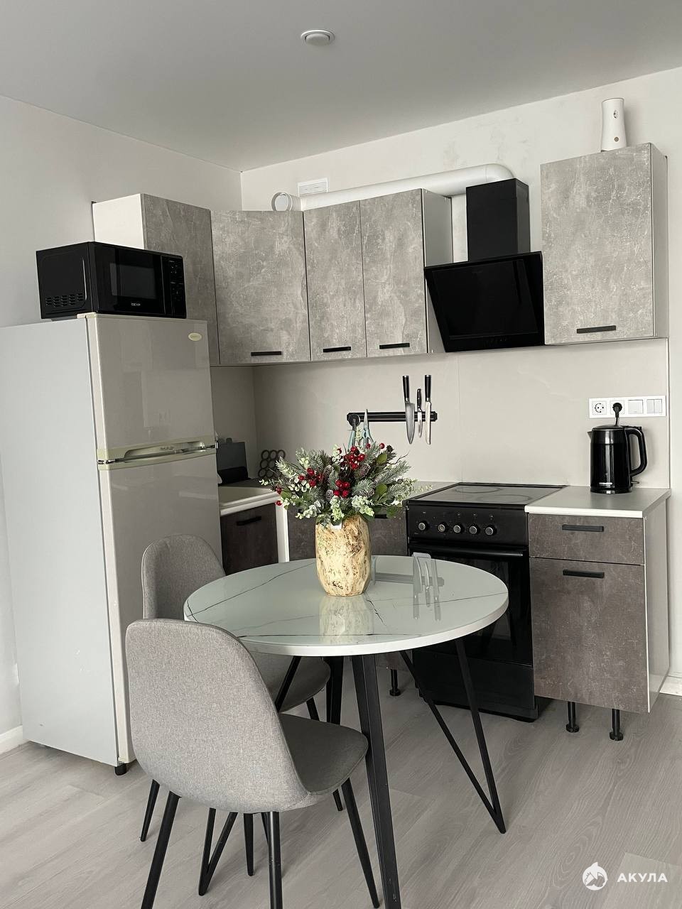 Оборудованная Кухня:Компактный, но вместительный кухонный гарнитур, оборудованный всей необходимой техникой: холодильник, плита, вытяжка, микроволновая печь.