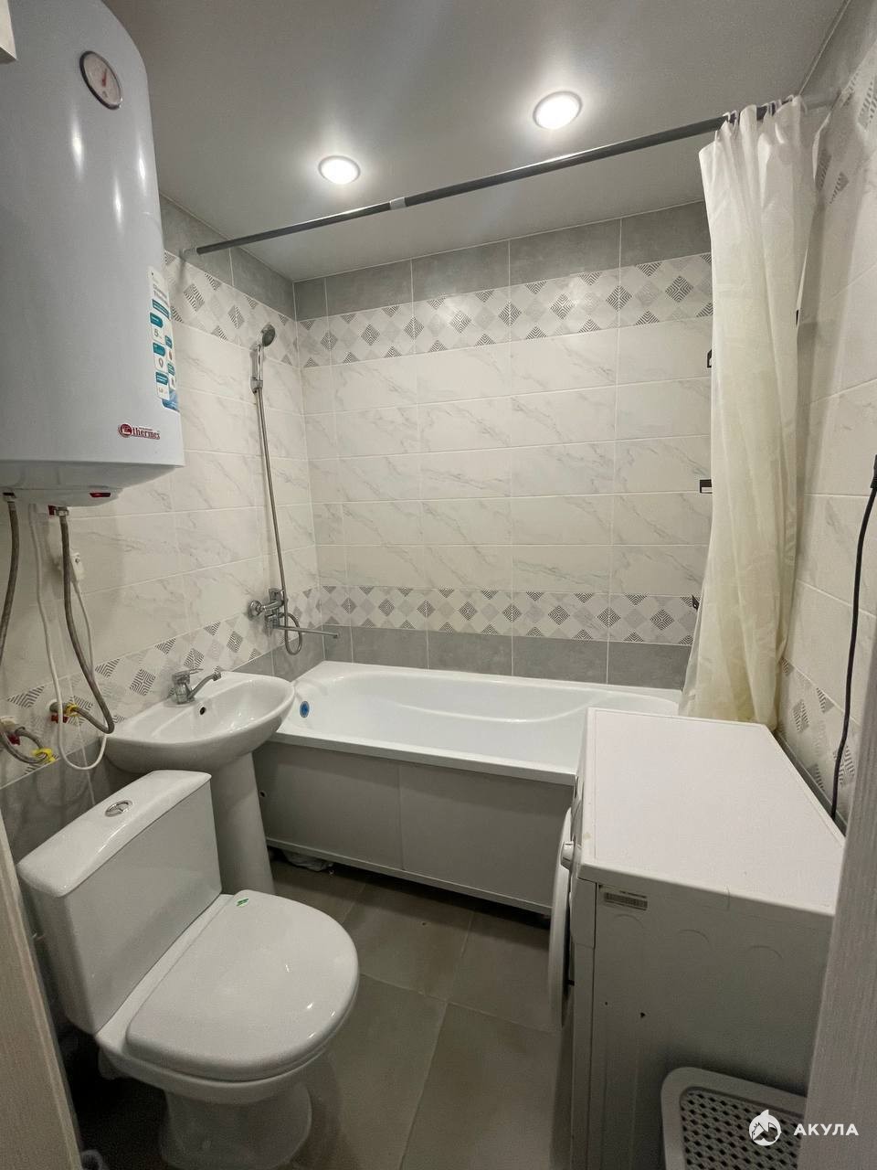 Санузел: Совмещенный, чистый, с сантехникой и местом для стиральной машины.